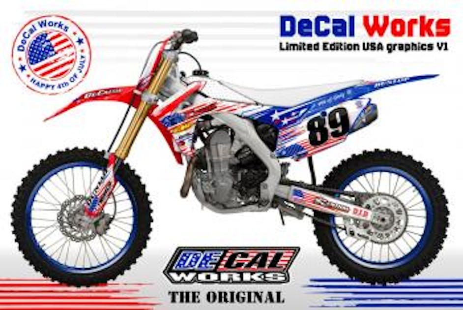 Chicago, IL – DeCal Works, the original and still #1 Graphic and Number company, proudly offers new Limited Edition USA Graphics. Revealed before the July 4th holiday by select DeCal Works riders, the overwhelming response was, "How can I represent?".