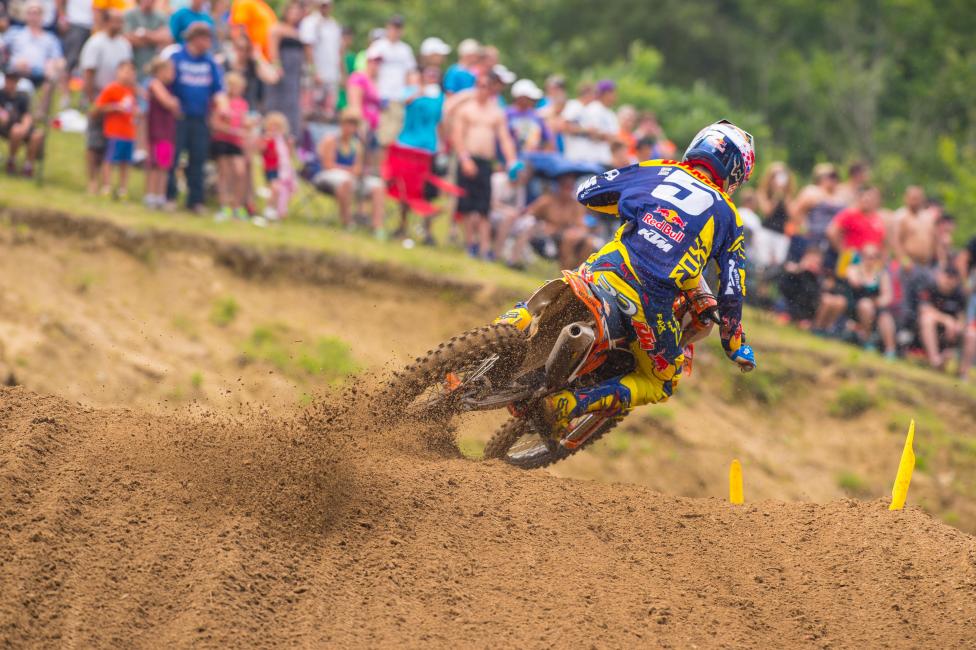 Let me just say overall not an ideal weekend. I actually felt pretty comfortable in practice and stuff. We did some little tweaks to the bike. Had a good fight with Eli [Tomac] there in the first half, and then he was able to get by. I just made a few mistakes and didn’t have the best line choice. We had quite a good gap to third, and I basically just finished where I was at in that first moto. Second moto I actually didn’t have the best start. I actually had kind of a crappy start in the first one; then it got red flagged. Got out of the gate a little better but got shut off by someone. It was just right there. I rode in third for quite a while then Trey [Canard] went by. I just started going backwards from then on.
