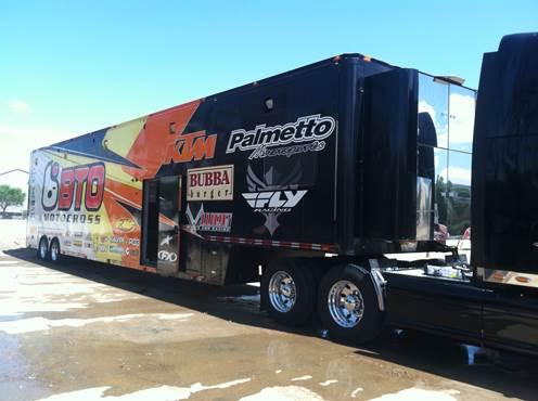 Thousand Oaks, CA - Team BTOSports.com KTM is selling our 2013 team race trailer. The trailer is a 2002 High Tech, and ready to go for the 2015 race season. Trailer is in excellent condition, and comes with the full canopy set up. Framing by High Tech and canopy by Larsen's.
