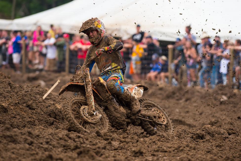 They tried to do maintenance on the track with the dozers and what would happen, they would pretty much shear the ruts over each other so it really didn’t do any good for anybody. You just would get into that… it got thicker. It seemed like it got tackier and thicker as the day went on instead of soup like it was earlier in the day. I was right there with the top guys, I hit some of that mud, and I just started going nowhere. Really sticky, kind of bogged the bike down a lot. Guys were just passing me left and right.