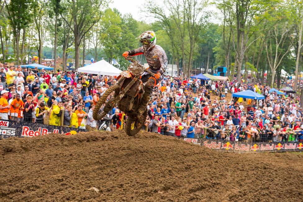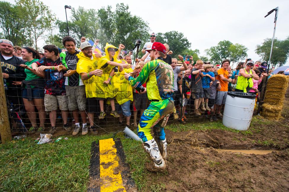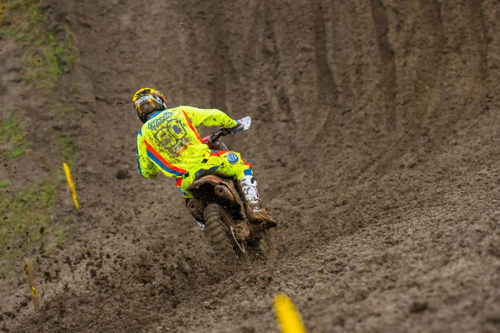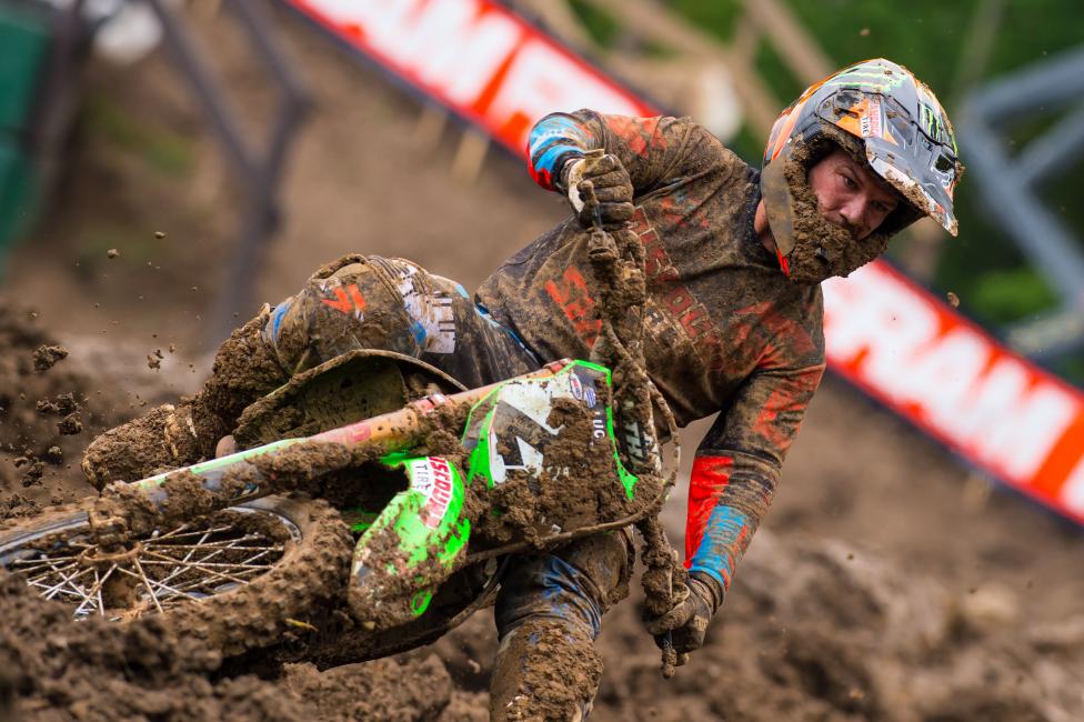 If anything it takes a little pressure off because there’s so much that can happen in a mud race that it’s out of your control. Staying on two wheels, being consistent, and I’ve been in the championship series before. It wasn’t like a disastrous day. We lost I think 13 points but back in like ’09 Pourcel. He had two terrible motos [in the mud at Southwick] and I was 13 points down and I left there 17 points up. I know it could have gone either way. Today it just happened to go Kenny’s direction. He did a good job of getting starts. I know that’s where he benefitted from. Even him going down twice I think in the second moto, and he still ended up second. So it’s just hard. The mud, you lose your goggles. I just fought a lot of those circumstances today, but we all did.