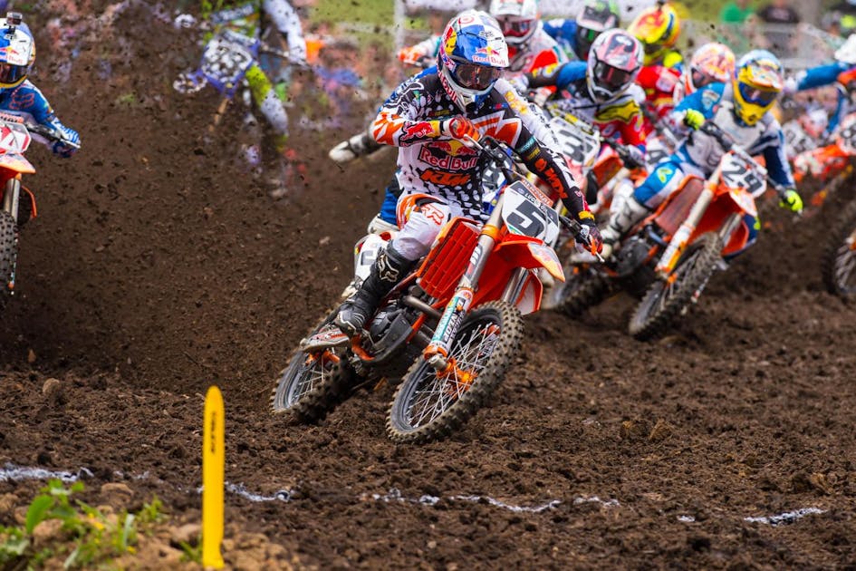 Well, it’s hard to fault anyone for having a bad day at a mud race. It’s as much roulette as it is racing at times, and Dungey wound up winning one hand and losing another in his two motos. Second place in the first moto was fine—you’ll take that in those conditions. I don’t believe his ninth in the second moto was anything more than the mud. Dungey ran into a bottomless hole on the first lap (which he couldn’t see because the track had been rolled over and cleaned up by the track crew, leading to what looked like a flat surface covering a variety of holes). He lost his goggles. He struggled. When he strolled into the post-race press conference, his eyes were red, but not with anger, but because he’d spent 30 minutes riding a mud race without goggles.
