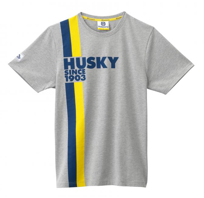 A high-quality blended fabric t-shirt featuring a striking 1980s design. Husky since 1903 graphic and retro stripes run over the right-side of the front. On the rear a simplistic ‘H’ logo is featured on the neck.