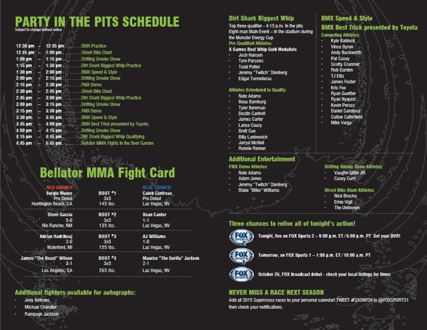 Sunday, Oct. 26 - FOX broadcast network offers a 90-minute Monster Energy Cup encore special following NFL football in most markets, while preceding football in others (check local listings).