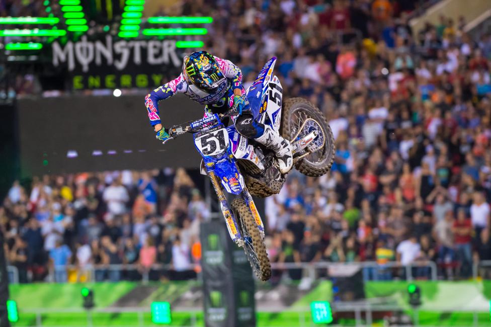 Well, obviously you want to win, but I was thinking we’d be on the podium for sure. With my riding and training, I felt like I could do that, but things just didn’t go my way. It’s a learning process with the new team and me, but I know it was me today. Everything was good; there’s just a learning curve of communicating with them and me learning the lingo. All dirt bikes are different, and there are things you can do to make them do different things. This Yamaha is extremely fast, and on a track like this you really don’t need a lot of power. Dean, the motor guy, had an idea of what we should do, but he didn’t want to just say, “Hey, this is what you need to do.” I mentioned something before the last race, he made an adjustment and it was better. So in that third race the bike felt good—I got a good jump—but then [Dean] Wilson and I came together and I went off the track. I got back on and [Blake] Baggett and I came together and we went down pretty hard. It was just a tough night, and we’re all bummed for sure, but we got it out of the way and we know what we need to work on now.