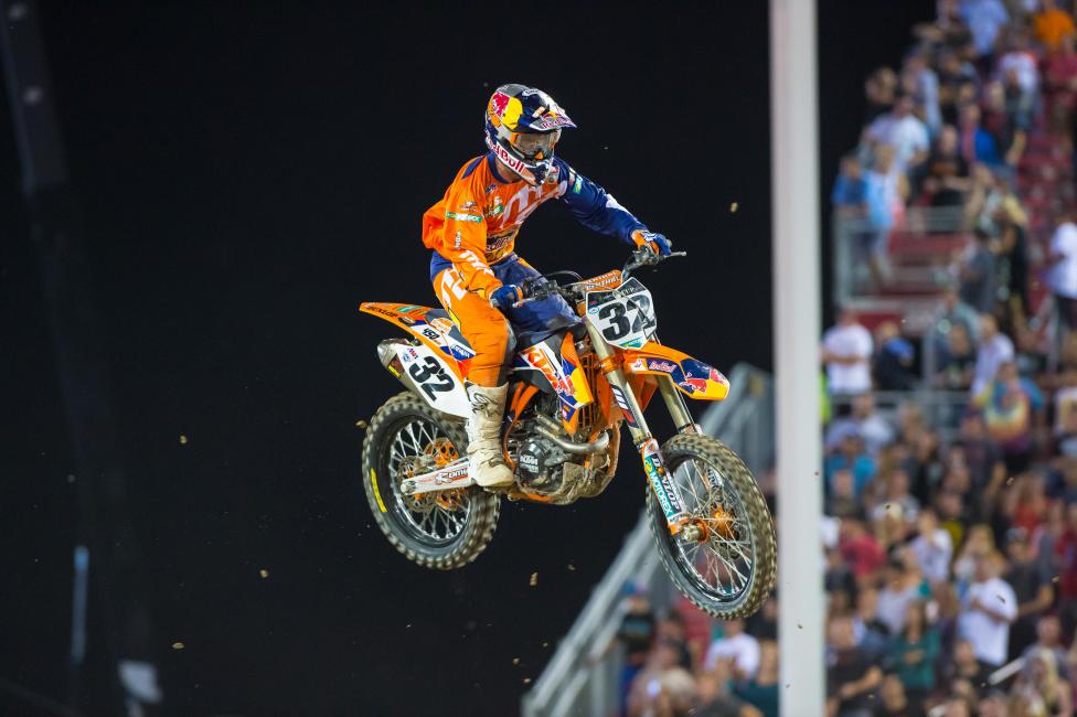 I’m a little bit of both. The money would have been cool, but I’m not afraid to work, so I think I’ll be able to make money. I’m not worried about it. I don’t plan on slacking off, and I’m going to take advantage of every moment I have, and I think teams like that, so I think I’ll have good job security. Mainly, I just wanted to go into the night and show everyone that I can ride a 450—I feel like I’ve always been a 450 guy—and I think I did that. I was definitely going for the win, but even though that didn’t happen, I think I put in a good showing on the 450. I’m bummed because I’m sitting here trying to walk around and I can’t really, but I’m pretty excited that I showed what I could do. Plus now I don’t think Roger [DeCoster] will bat an eye if I want to race some East Coast races on the 450, which I really want to do.