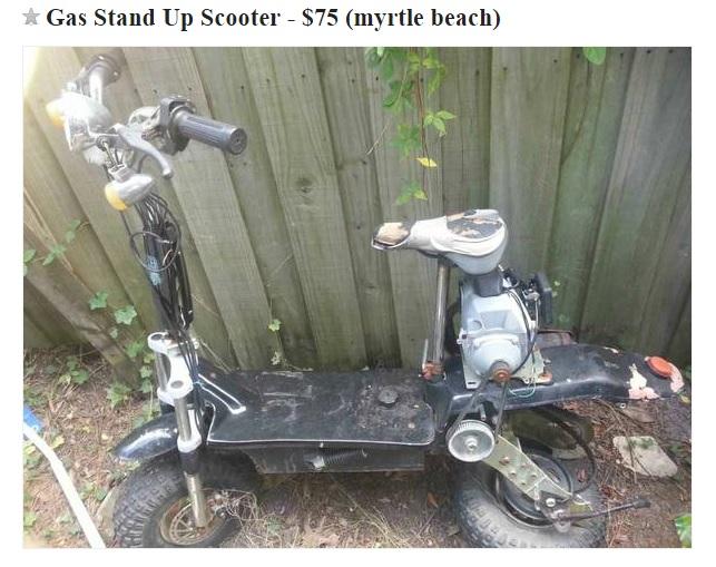 He wants a scooter. Seller mentions he’s going to use the money to get a new scooter, which confirms our suspicion that he’s not the sharpest knife in the drawer. In fact, he’s probably got the knife upside down and is attempting to hack his way through a slab of spam right now.