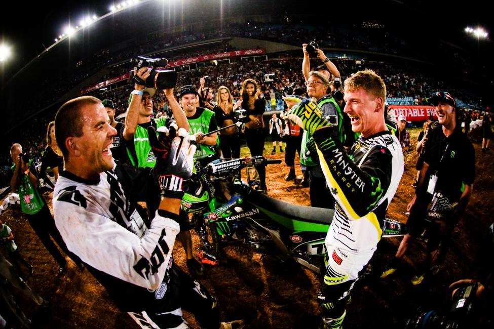 The South African Supercross was amazing. We went a little early and went to Cape Town and got to climb some pretty cool mountains. We did that and went to see the beaches, and then we flew out to Cape Town and went and played with the lions and went and did some promotions for the race and rode a local supercross track to make sure our bikes were dialed. The race itself was one of the best overseas supercross races I’ve been to. The track was in a massive stadium with a huge floor for the track. The track was pretty close to an AMA Supercross. The lap times and jumps were a little shorter and not quite as steep, but it was close. It was a great event and I think 30,000 people showed up. So it was good.