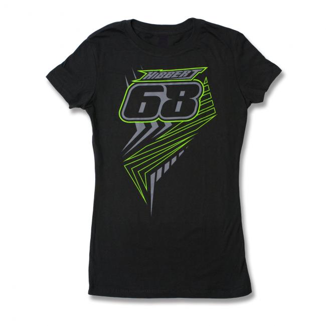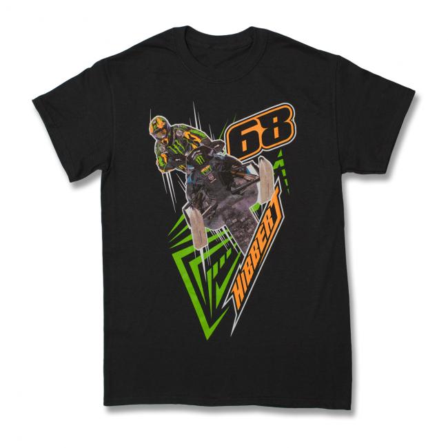 Bright orange and green graphics highlight a detailed image of Hibbert racing on the front and his name and number on the back. The T-Train t-shirt is available in adult and youth sizes.