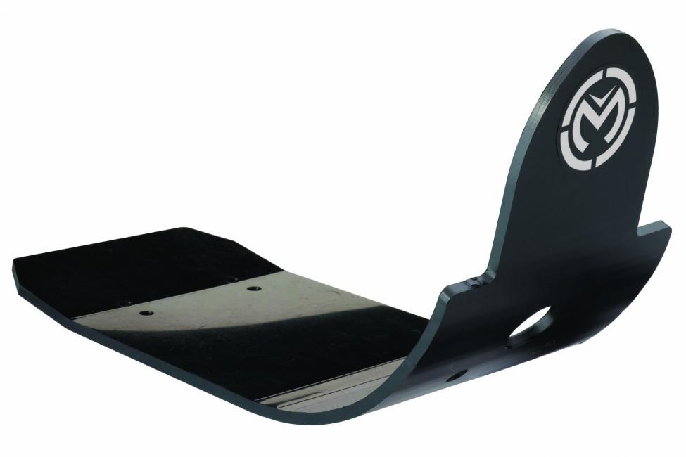 Since there’s not room to list everything here, we’ll focus on a Moose Racing’s high-density polyethylene Pro Glide Plate. If you don’t know what high-density polyethylene is, it’s basically a very strong plastic, which makes the 6mm Pro Glide Plate 40 percent lighter than traditional 4mm aluminum glide plates. That’s right, it’s thicker and lighter. It’s resistant to chemicals too, so you won’t have to worry about spilling fuel, oil, or any type of cleaning products on it. And since it’s plastic you won’t ever have to hear that annoying metal-on-metal clanging when your bike vibrates. In other words, your license plate won’t rattle when the bass hits.