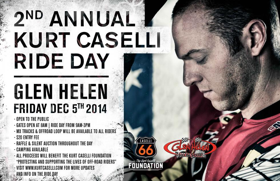 With your help we have been able to do so much in less than a year's time and we thank you! This is an open invitation to all of Kurt's supporters and dirtbike riders for the 2nd Annual Kurt Caselli Ride Day on December 5 at Glen Helen Raceway. Bring your bikes and support a great cause and an American Legend.