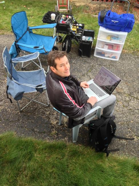This afternoon I cruised over to the Toyota/JGR Yamaha test track to check out the team’s 2015 photo shoot with Justin Barcia, Weston Peick, and Phil Nicoletti. Barcia is manic, man. Photo shoots are a bit of a slog with lots of waiting around, and Barcia sucks at waiting. He started ADDing his way around the place, goon riding like crazy. Then he started doing wheelies down a dirt road. Then standing seat wheelies. Then he tore off into the woods and blazed some trails, did some more wheelies and stoppies, and goon rides back on the SX track. The guy has energy to burn, but when it did get serious, my was he on point with his fast laps.