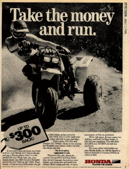 (There’s an added bonus at the end of this Pontiac ’86 clip that put a smile on my face: highlights from the 1978 Pittsburgh Supercross! It shows Bob Hannah go off the track after passing Marty Tripes, then spin back around on the plastic to get back in the race, then run Tripes down again—I was a 13-year-old caution flagger at that race! Whoever put this together, it’s a great juxtaposition of how far supercross had evolved in less than a decade.)
