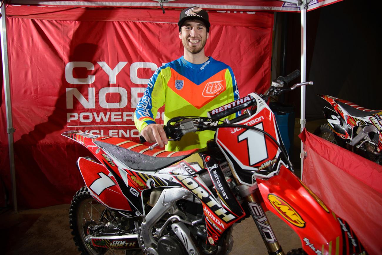 Washington State’s Ross Johnson is one of those great riders flying under the radar. With a family and job, he’s not able to make it to every Monster Energy Supercross or Lucas Oil Pro Motocross, but he pokes his head in here and there and pulls out some good results. Go ahead and look him up in the Vault; he’s right under a guy named Rick Johnson. (Whatever happened to that dude?) Johnson, riding for the Cycle North team, raced the Future West Canadian Arenacross series and came away with the Pro Open title this past weekend after the last round. I caught up to him after the race to get his thoughts on everything.