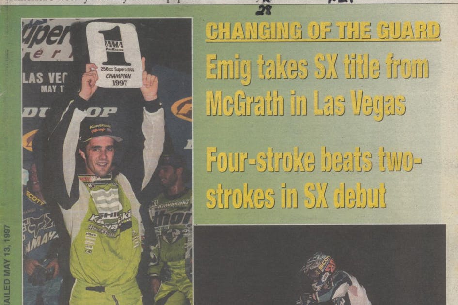Thirteen points—that’s a lot, and then again, maybe it’s not. Emig had the pressure on him going into the last round in Las Vegas while McGrath could hang it out and hope for the best. The race was a bit anticlimactic. Emig rode around for an easy fifth and McGrath ended up seventh. McGrath didn’t have much of a shot, as he had actually cut his foot in a household incident the week before the race, and wasn’t 100 percent. Jeff Emig had officially dethroned four-time champion Jeremy McGrath and taken the 1997 250 Supercross Championship,