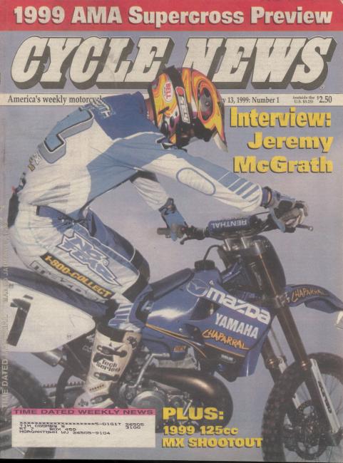 Anaheim held a second race in 1999, the fifth round of the series, and it was once again Ezra Lusk who rose to the occasion, beating McGrath again in “The House that Jeremy Built,” which led Cycle News to call Lusk “Mr. Anaheim” on its cover. Jimmy Button finished third while riding a Yamaha factory YZ400 that Doug Henry would have been using had he not decided to not race SX that season.
