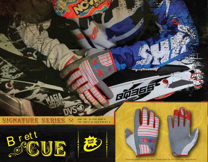 Trust us when we tell you Novik offers some of the best gloves money can buy. And speaking from experience, the gloves work for all kind of things; from golf to working out to riding mountain bikes, Novik provides your hand and fingers with top-notch support. The “SIGNATURE SERIES” Gloves are designed and approved by freestylish/whipmaster Brett Cue and JAB Motorsports’ Matt Lemoine. Now you have a chance to wear the exact same glove that these riders are wearing at all their events. Visit Novikgloves.com, or your local dealer, and pick a pair up today for just $22.95.