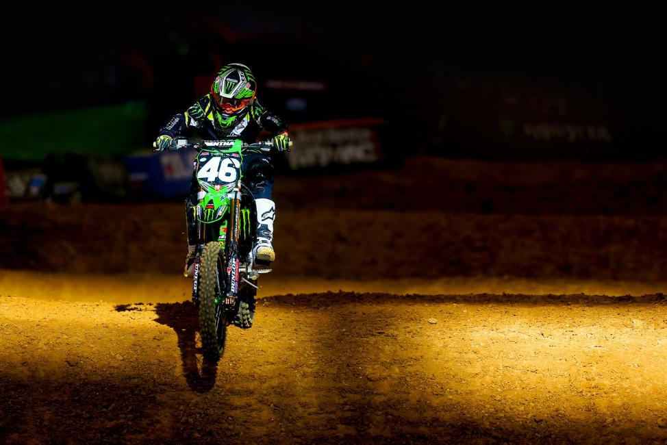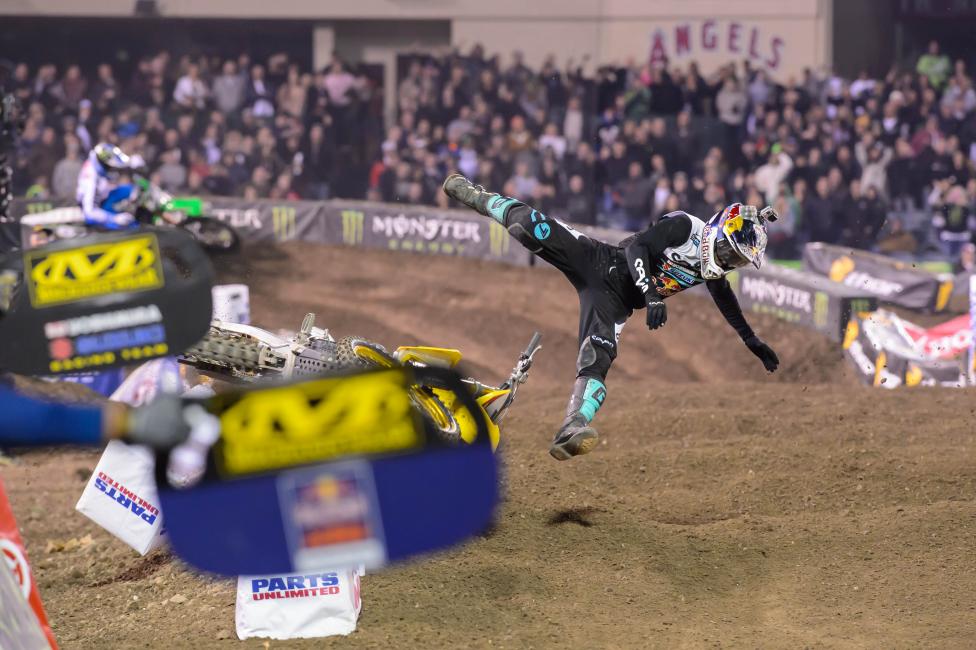 Since turning professional, Justin Barcia had always been a Honda rider (GEICO and American). The Monster Energy Cup was his first American professional race on a different brand. It didn’t go as planned as he tangled with Blake Baggett.