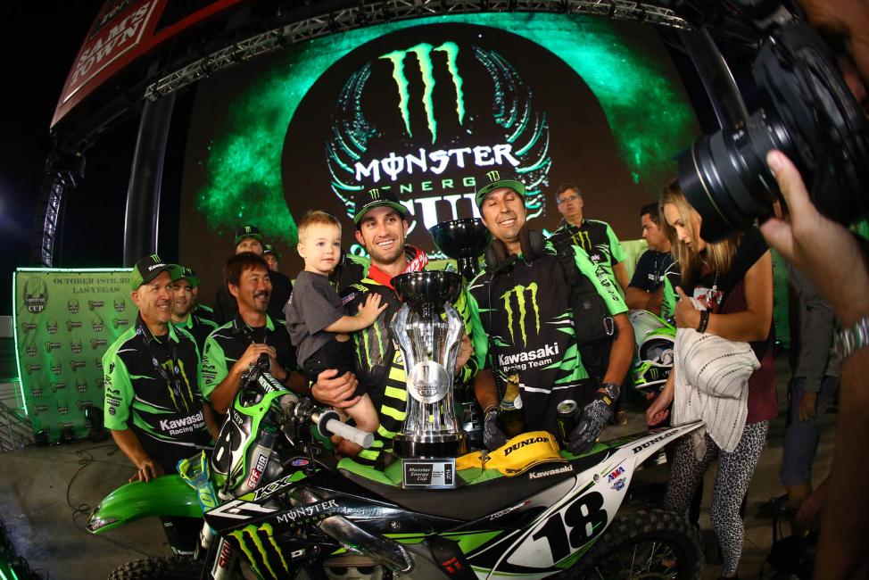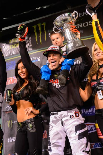 A big night for Chad Reed at Anaheim 2 in 2014. It was cool to see him on the podium with his son Tate. It really represents what this sport is all about.