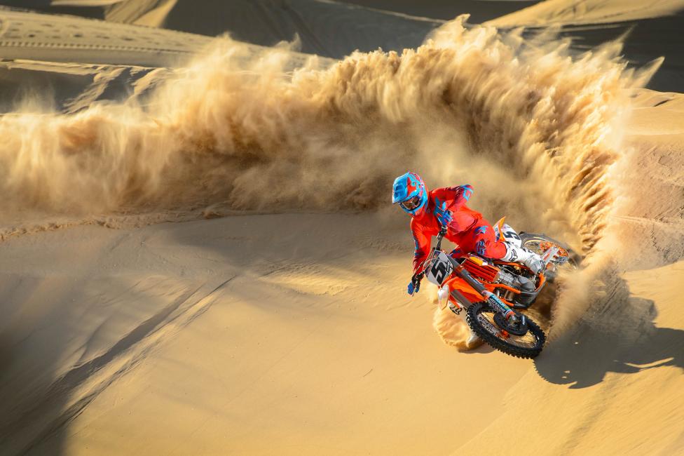 It is much harder these days to get the top pros to head out to the dunes. Fox managed to get Ryan Dungey out to shoot at Glamis in March for their MX15 gear line.