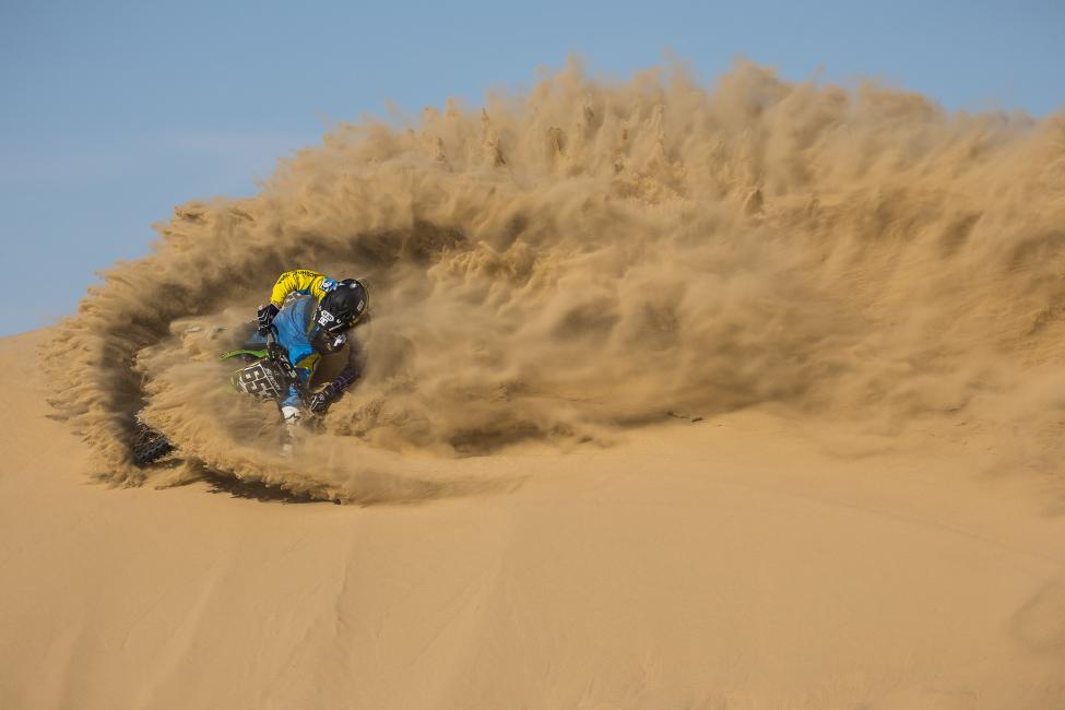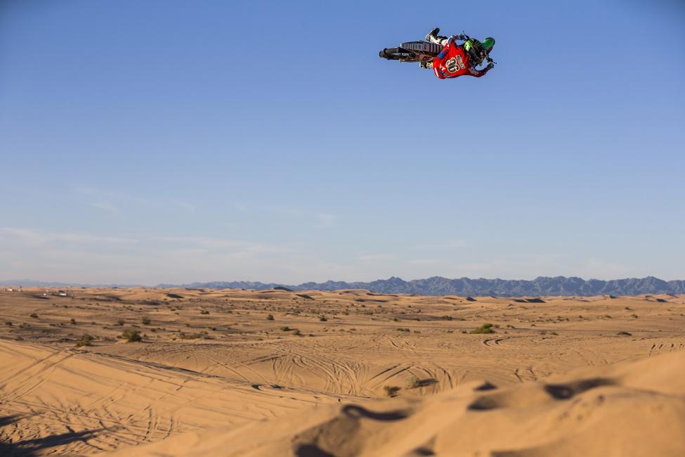 When going out to the dunes with a crew of experienced freeriding legends like Twitch, Tyler Bereman, and Jeremy McGrath, you don’t normally expect to see young guys blasting the biggest jumps with the biggest style. Everyone has his day to shine, though, and this day was definitely Axell Hodges’. Axell was destroying this jump every bit as well as, if not better, than the others.