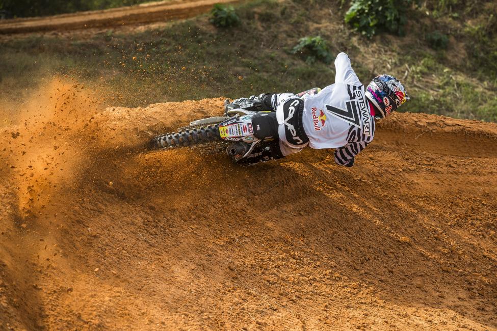 This shot of James Stewart made my top-ten list for no other reason than the absolutely phenomenal speed and style that James is carrying into this corner with him. The angle of his bike, along with the dirt and roost flying, truly convey in a single split second just how fast James is going around this 180-degree bowl turn.
