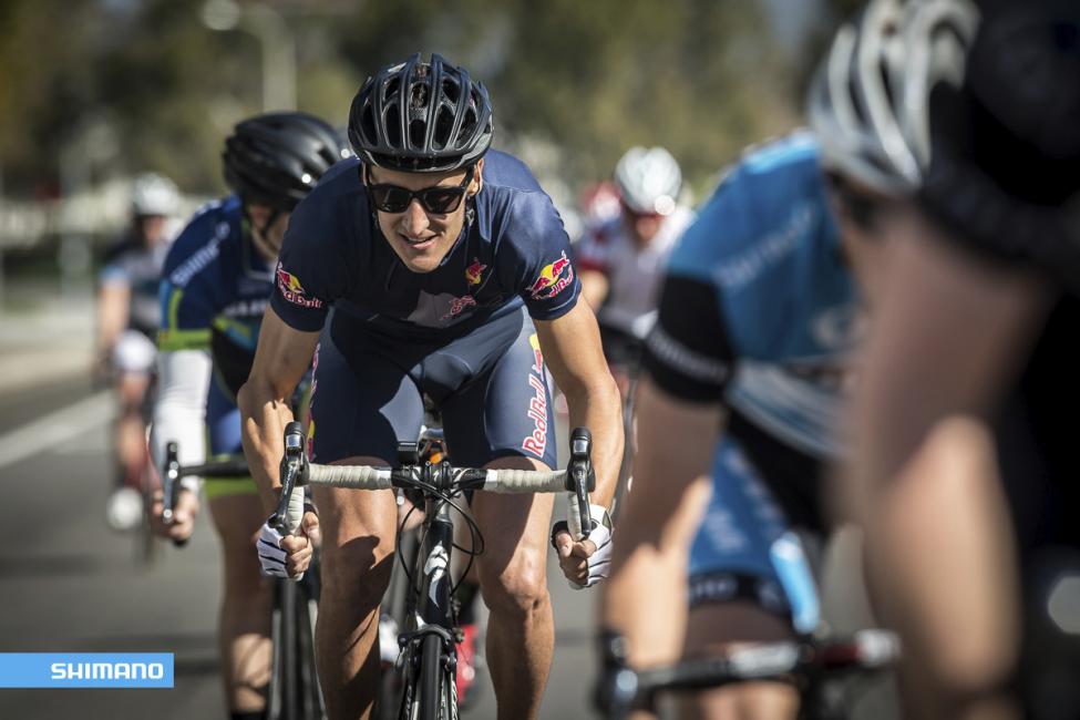 The list of supercross racers on hand included Cole Seely, Justin Barcia, Broc Tickle, Cooper Webb (who had won the previous evening’s West Region 250SX main event), Marvin Musquin and reigning East Region 250SX Champion Justin Bogle, along with legends from the past like Jeremy McGrath, Jeff Ward, Mike Bell, Micky Dymond, Jimmy Button and Phil Lawrence. “I always do a little recovery ride on Sundays, so it was nice to link up with a bunch of friends and have some fun,” said Seely, who had finished sixth in the 450SX main event at Anaheim 2. “Cycling is a passion of mine, and I’m thankful to have Shimano support me.” The Team Honda racer had ridden to the event with his trainer Brian Lopes, a multi-time mountain bike champion.