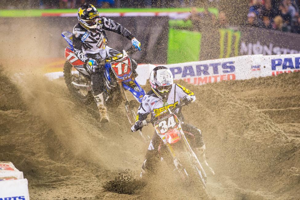 When I saw his bike flip I wasn’t sure if he saved it or not, and I still went inside and almost hit him! I was like, “Okay, Hill’s down, another spot, awesome!” Like I said, I didn’t know I was in first until I looked on the board on lap thirteen and saw 34 in first, and that’s when my heart started pumping. Those last two laps, I don’t know what I was thinking! I was over-jumping the triples, under-jumping, double clutching in corners, but hey, if that’s what it means to be up front and get your first win I’ll take it all day long.