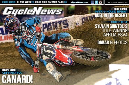 Trey Canard's first AMA Supercross win since 2011 landed him on the cover of this week's Cycle News. You can check out the whole issue here for free.