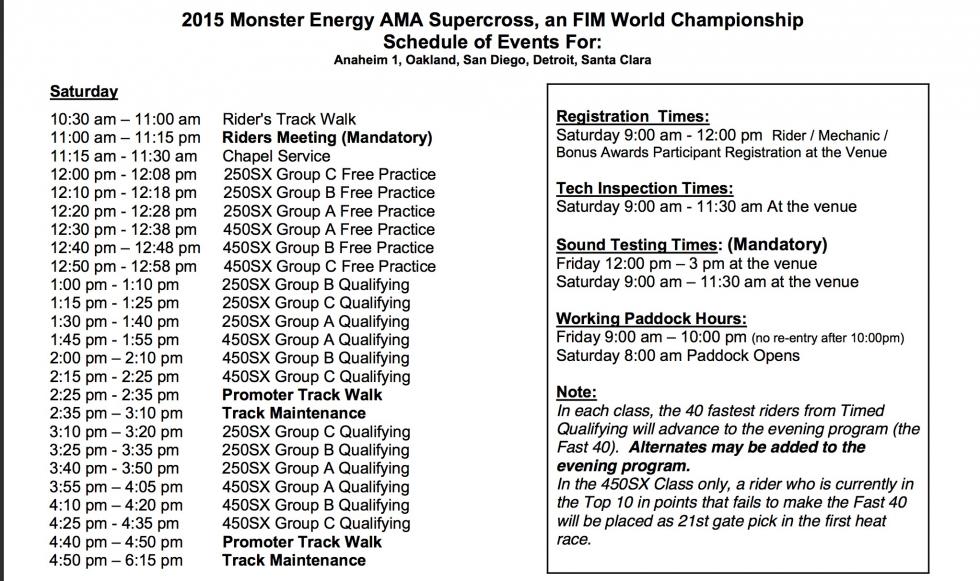 1:50 - 5:30 p.m. ET (12:50 to 4:30 p.m. local) - www.supercrossonline.com
