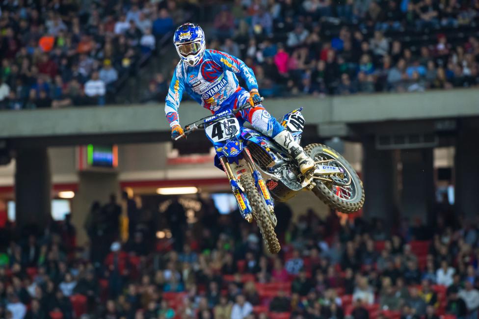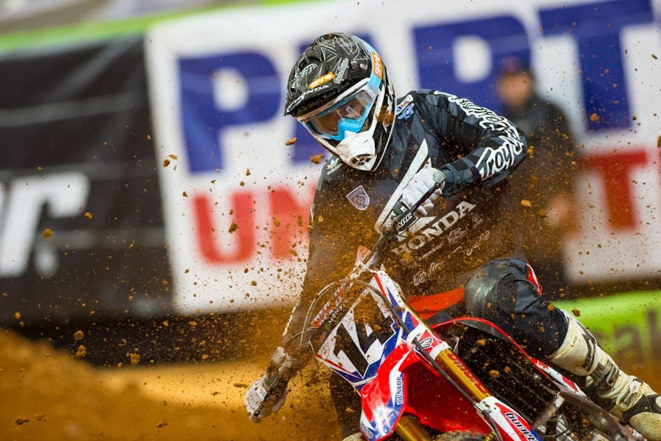 Trey Canard: Not a bad night, happy to be on the podium, but bummer to get another bad start. Just moved forward and did the best we could; that’s all we can really ask for. I think the bike started working even better in the main event; it’s good to carry that feeling forward. I just tried to make moves. I was riding really aggressive, and I think you just have to do that when you’re that far back. When I got into third I started to catch [Dungey] a little bit, but we just basically cat and moused it all the way to the last couple of laps. That’s all I could do.