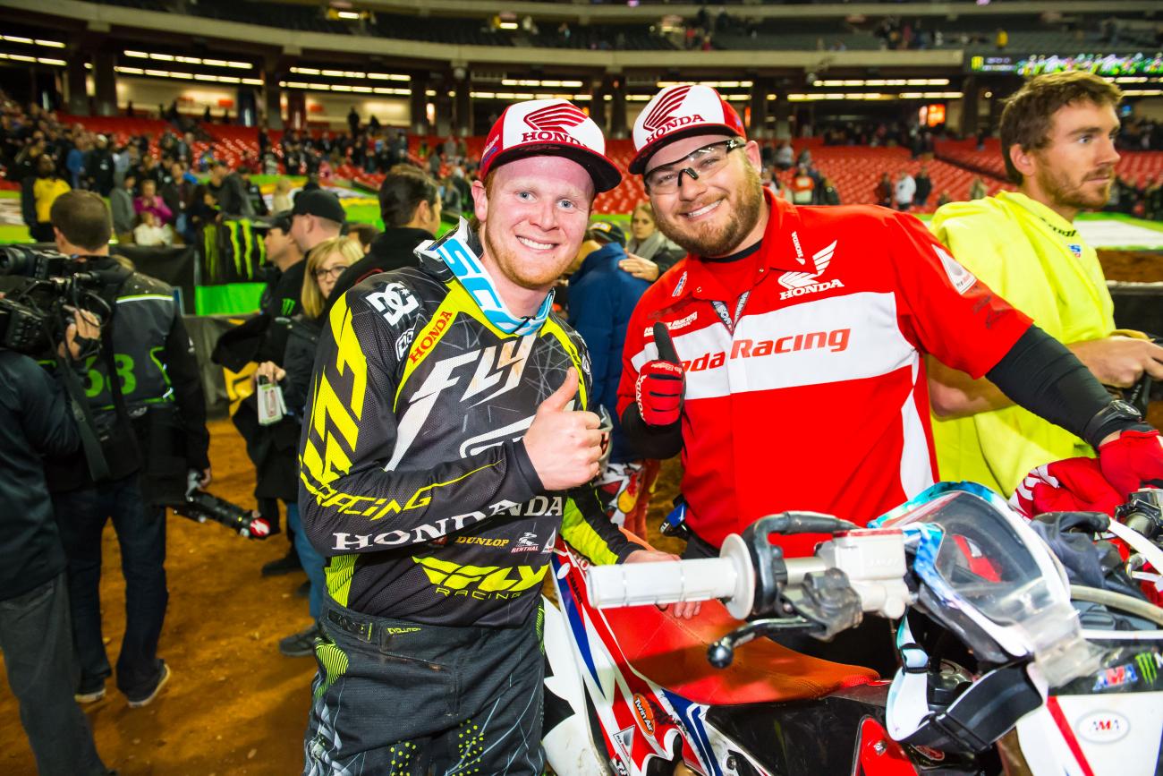 Clutch lever worked good. We had to do some muscling in the first corner for the main event, but everything turned out good. Weston rode great. The goal was try and get a top-ten, and obviously I came up one shy of that, but I did that to myself. Might get one more shot next weekend at Atlanta 2. Try and break the top ten before [Justin] Barcia comes back maybe for Daytona.