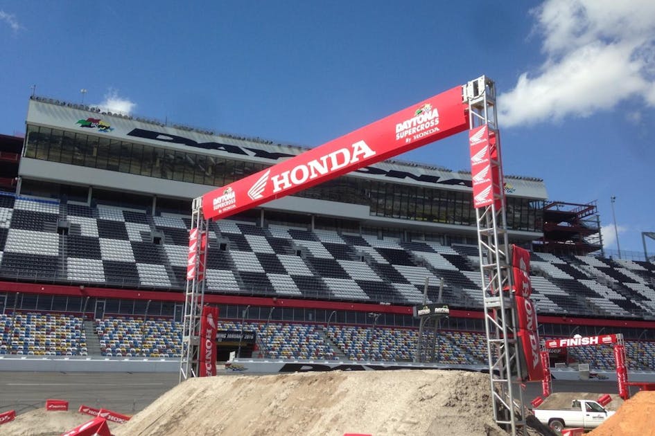 PING: Daytona is a weird animal. I raced it a few different times and there is no other event quite like it. It used to be during the day and the lap times were a bit longer than they are now, which made for an incredibly physical race. Now its closer to one minute laps and it runs under the lights when the temps drop down a bit. Still, the course gets chewed up and rutted and there isn’t any flow to it whatsoever. Your supercross suspension is too stiff and outdoor suspension is too soft so you have to find a happy medium that doesn’t break your wrists if you case a jump and doesn’t swap you off when you race into some choppy bumps. It comes at a time in the season when the pecking order is really starting to get set in place. Daytona is one of the most prestigious races of the year so there is extra incentive to perform. The start used to be very strange; it was built right on the grass so you had deep sand ruts in each gate. Some riders filled them in with chunks of sod and others packed the sand down the best they could. It was always brutal and strange and fun and this weekend will be no different.