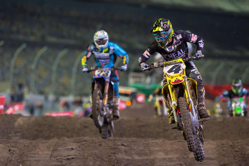 Yes, and that’s a rough track. Anybody that says they raced some sand, it’s nothing until you go over there. That’s why those guys are no slouches over there. Everybody thinks we’re going to go over there and crush them, but they’re human just like we are and they’re fast. They’re bad dudes just like we are. You’ve got to beat them on their off-days and they beat us on our off-days. When we both have good days it’s an all-out battle. Definitely here, it’s not the roughest thing but it’s rough and I think it makes it rougher because everybody’s kind of on the supercross side of settings and bike, and all of a sudden you’re supposed to go from first and second gear to fourth gear wide open. If it was in the middle of the outdoor season I don’t think anybody would say it was that fast or rough, it’s more that it’s just throwing the guys off.