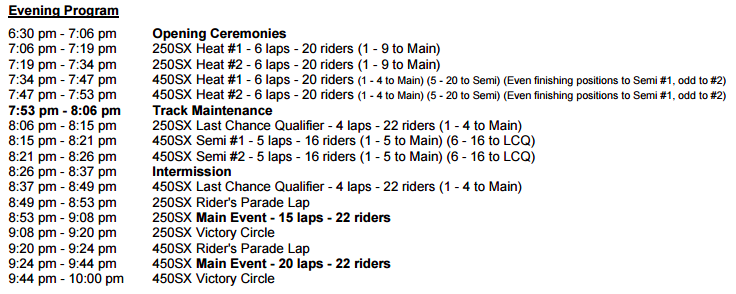 450SX and 250SX - 7:00 p.m. ET - *Live