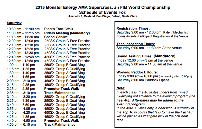 12:50 - 4:30 p.m. ET (12:50 to 4:30 p.m. local) - www.supercrossonline.com