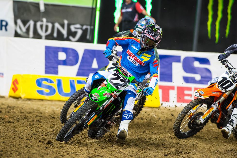 The track was gnarly tonight. It’s getting late in the year. People are starting to get burnt-out, I think, and people start crashing more. Supercross is gnarly. That’s why you got to give it up to the guys that can go year after year and be on top. People don’t understand that. Especially Dungey and [Ryan] Villopoto, it’s gnarly. For me, I’m racing more than I thought I would. I’m happy to be here and obviously I got fifteenth tonight coming from way dead last, so we’ll keep plugging away. Hopefully St. Louis will be better; the dirt will be a little bit better. Try and have some fun. –Roberts