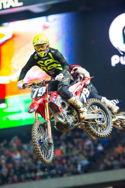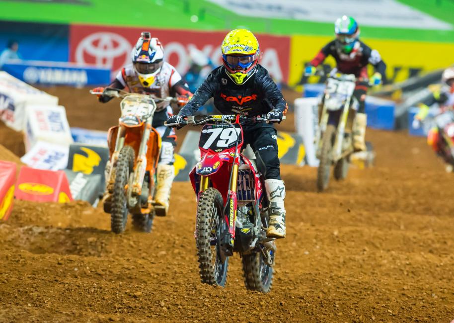 Yeah, I was definitely pretty bummed. It’s just one of those things where I either needed to pull my head out of my ass or hang my boots up. I needed to do something. I’m definitely not a quitter. I wanted to get this figured out, and I’ve wanted to for a long time. I feel like I’ve been struggling for a while and I’ve kind of broken through that you could say. At Indy I was good in the first timed practice, and in the second one they made a little track change. I ended up going down pretty big. The track got faster and it bumped me back a few spots. I didn’t get to finish that practice because my bike was pretty mangled up. In the heat race I should have qualified no problem. I ended up making a little stupid mistake and stalled my bike. I couldn’t get it started, but I came back to tenth and just missed getting in. In the LCQ I got a good start, and then someone had crashed, so they ended up red-flagging it. I was in second at the time. I held my composure and ended up making it through. Then in the main it was a case where I really have nothing to lose. I’ve put a lot of hard work in and I’m tired of sucking. That’s all there is to it. I really put my head down in that main to break through that ice. It’s confidence for me getting those top-tens. I know where I belong and I’m aiming for that top-five mark.