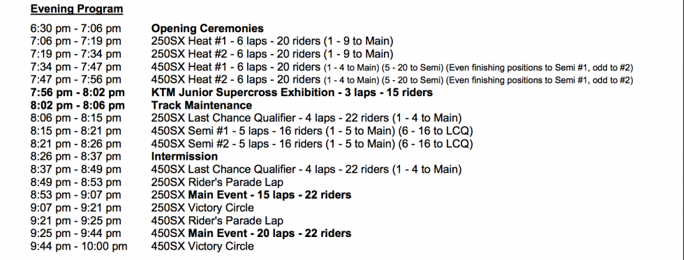 450SX and 250SX - 8:00 p.m. ET - *Live