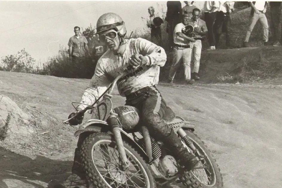 [Note: Carl was a top motocross rider from Sweden who emigrated to the USA and settled in Chicago in 1967. He quickly got involved in the local scene and was the #1 rider in the Illinois-Wisconsin-Indiana motocross scene. He also followed the Edison Dye Inter-AM series and finished fourth “American” behind Dick Burleson, Bryan Kenney and Sonny DeFeo. In 1971 he was hired by Torsten Hallman to run their Midwest warehouse. This picture was shot at Hallman headquarters before the RedBud Trans-AMA in 1976. Carl went on to off road racing and won classes in the Baja, Mint 400 and Gold medals in the ISDT.]