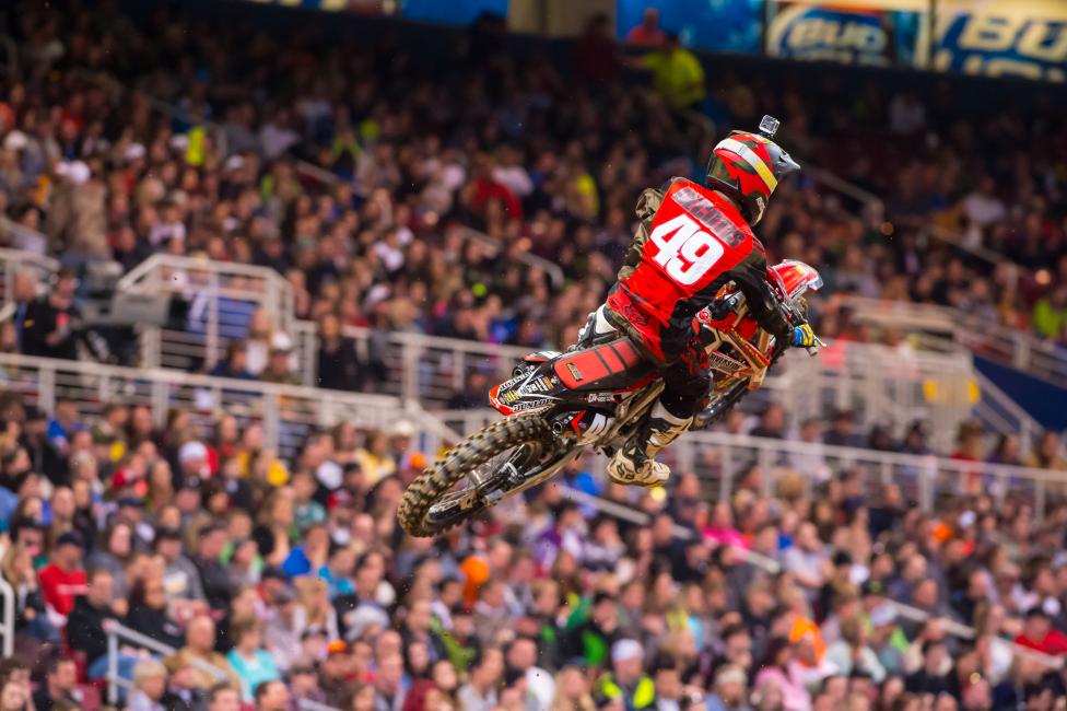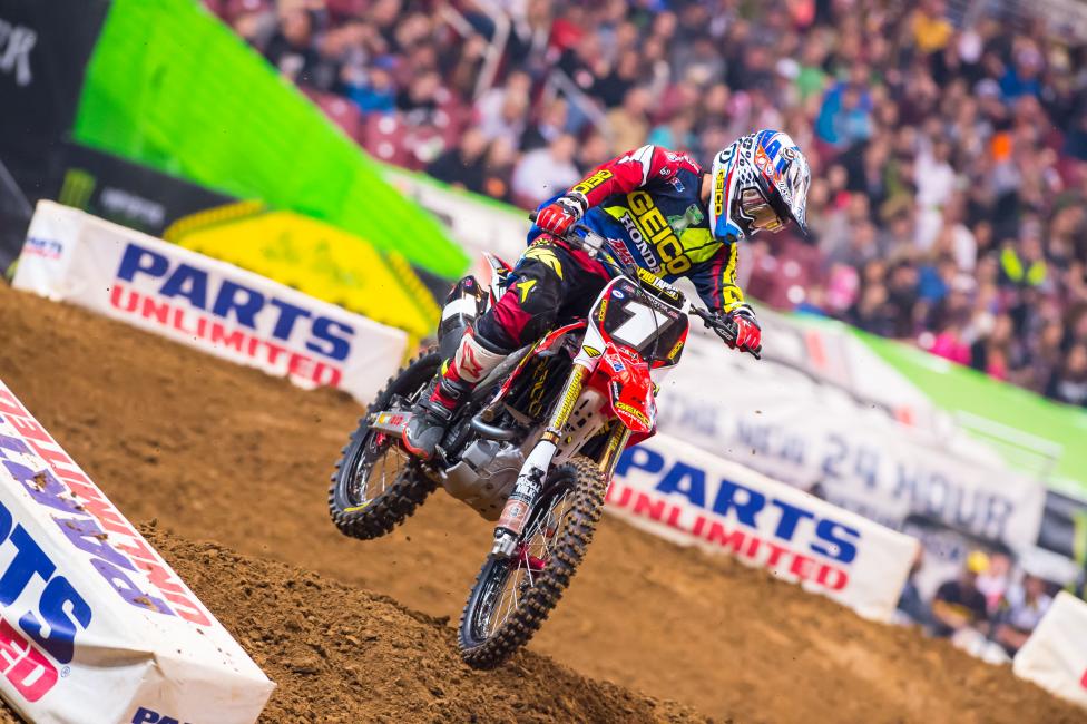 Justin Brayton: My night was okay. Main event didn’t go that great result-wise, but I felt like I made a pretty gain today with my riding. I was pretty fast in practice and decent heat race. Main event had a good start. I don’t know what happened. I slid before the whoops before the finish and just went off the track and plowed into the scoring tower and was a lap down or something. I feel like my riding was pretty good today. Overall happy with that and that’s all. At this point obviously there’s no points involved for me, but need to get some good finishes for myself and the team. I feel like we’ll be on track at Houston.