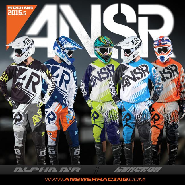 “Answer Racing has been producing the highest quality moto gear since 1976," says Brand Manager Randy Valade. “We are pleased to keep that tradition rolling with the launch of our Spring Collection.” Highlighting the 2015 collection are two new colorways for the Alpha Air vented race wear and three new color schemes for the popular Syncron line.