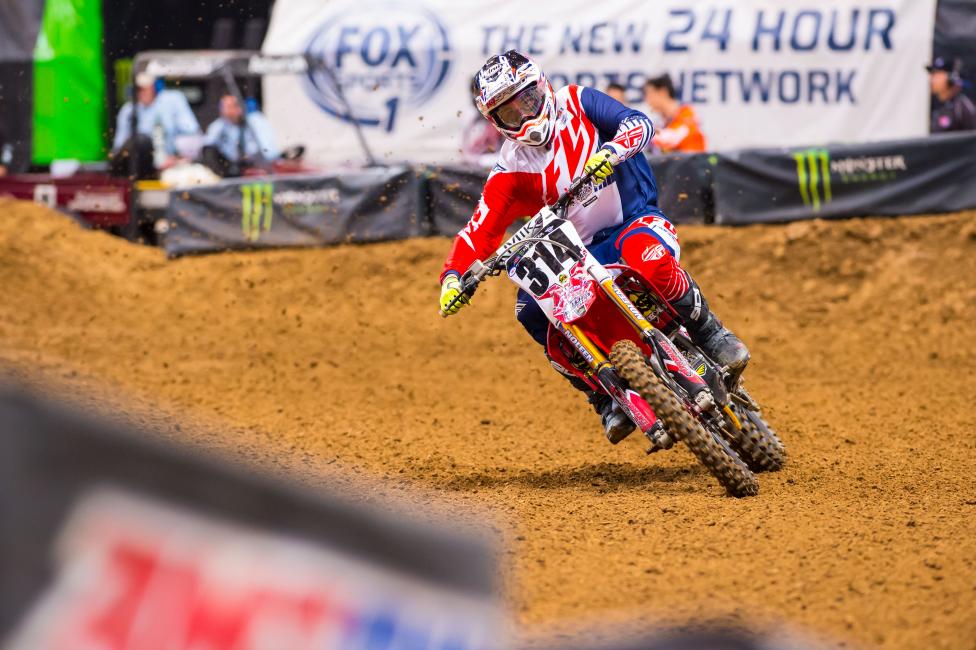 Oh, man, it was great! I can’t stress that enough. In the LCQ I was second into the first turn and I think [Killy] Rusk passed me. I stayed there the whole race. I had Ronnie Stewart behind me, and he could have punted me off of the track every lap. We all knew that we were in a qualifying spot. I was just so pumped when I came over the finish line jump I held my bike wide-open for like thirty seconds. I was surprised I didn’t blow it up because it was banging off of the rev limiter for so long. I was just so happy to be out there in the main event. I was riding like a goon. It was more like, “Oh my gosh, I am in the main.” I didn’t get a good start at all. I didn’t want to get in anybody’s way. Every time the leaders came by I kept looking behind me so I didn’t screw them up. I learned from it and we’ll get back into the main event in Houston and things will go better. Now that I know that environment and I know what I need to do, I think we can get a top-fifteen for sure.