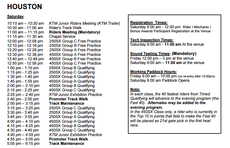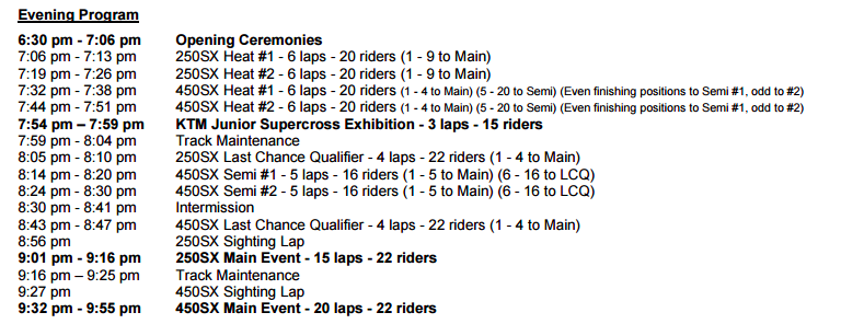 450SX and 250SX - 8:00 p.m. ET - *Live