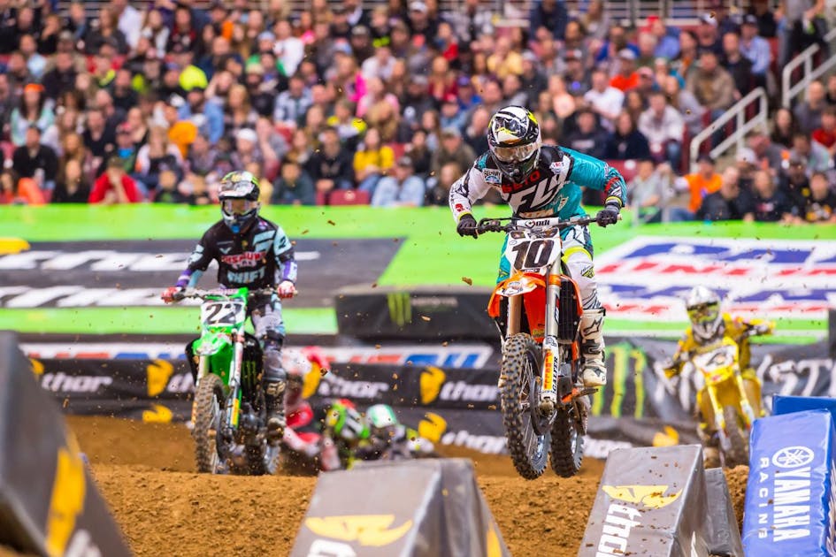 Round 14 of Monster Energy Supercross, an FIM World Championship, takes place this Saturday, April 11, in Houston, TX. Action kicks off with Andy Bowyer and Jim Holley hosting qualifying live from the NRG Stadium beginning at 1:50 p.m. ET on Supercrossonline.com. FOX Sports 2 will carry live coverage of round 14 beginning at 8:00 p.m. ET.