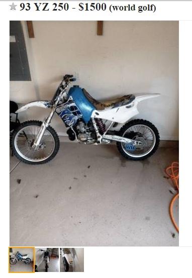 With two-strokes becoming about as relevant as rotary phones (please direct hate mail to jasonw@racerxonline.com) these days, it’s not uncommon to find flannel-wearing, rebel-flag waving, trucker-hat sporting dirt bike enthusiasts in garages across the country locked in a drunken and heated debate about what bike was the fastest two-stroke ever made. God help the man who utters a negative word about a CR500 in the wrong company, and don’t even get me started on what happens when classy YZ490 gentlemen clash with GED-toting KX500 fanatics. Fortunately, we can all unclench our fists and put down the broken beer bottles—the argument has finally been settled (although something tells us this guy hasn’t weighed in quite yet). Apparently the fastest two-stroke ever made is a 1993 YZ250, and you can pick one up in Jacksonville for mere $1,500. At least that’s what the seller says: