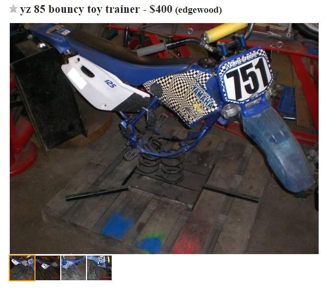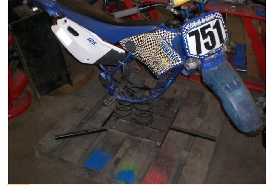 In a perfect world every single playground in America would have miniature dirt bikes on springs for kids to bounce on instead of weird cartoon characters that look like the product of a bad acid trip. Unfortunately, we live in the real world, where the only dirt bike on springs for kids to play with is this rickety contraption fashioned from a desecrated motocrosser, a pair of springs that may or may not be secured solidly to the bike, and an old pallet that’s roughly two weeks from becoming a pile of sharp splinters. Things like this are why we’ve lost the Motocross of Nations the last three years, America!