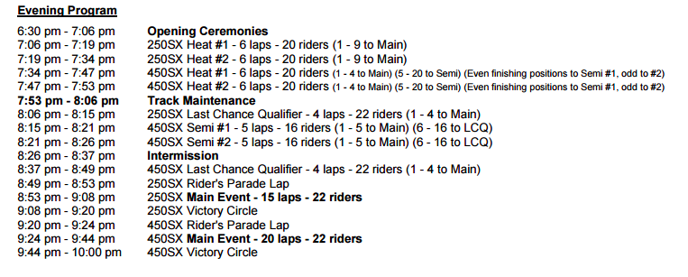 450SX and 250SX - 10:00 p.m. ET - *Live