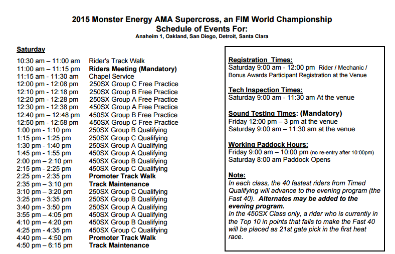 3:50 - 7:30 p.m. ET (12:50 to 4:30 p.m. local) - www.supercrossonline.com