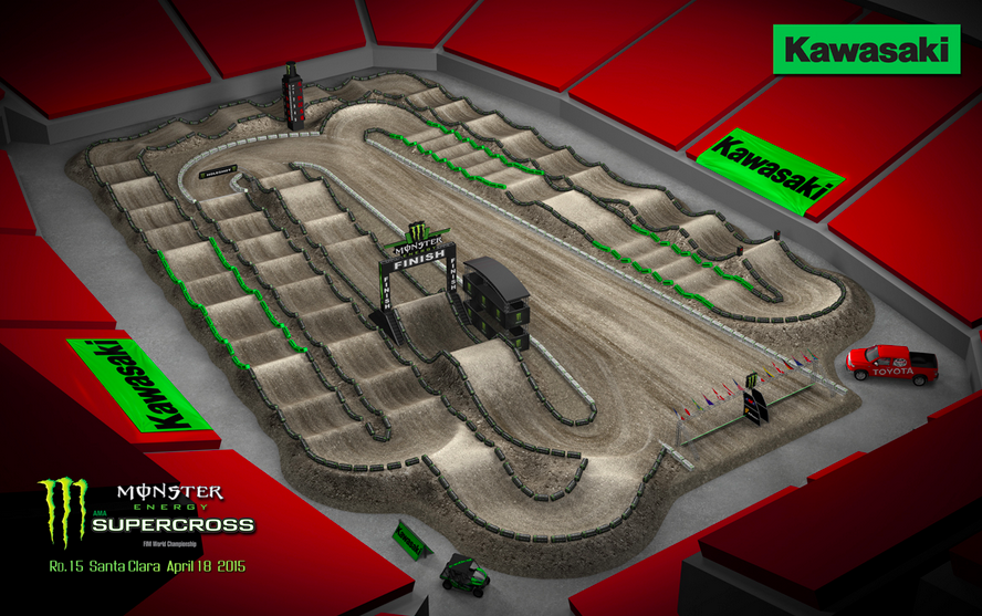 Round fifteen of Monster Energy Supercross, an FIM World Championship, takes place this Saturday, April 18, in Santa Clara, CA. Action kicks off with Andy Bowyer and Jim Holley hosting qualifying live from Levi's Stadium beginning at 3:50 p.m. ET on Supercrossonline.com. FOX Sports 1 will carry live coverage of round fifteen beginning at 10:00 p.m. ET.
